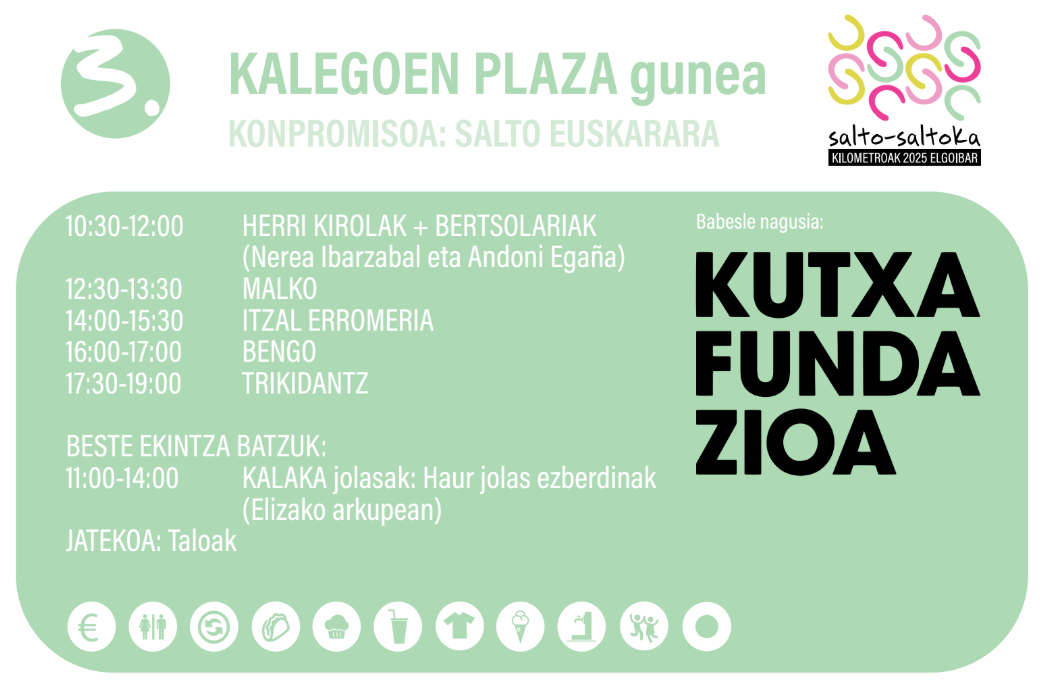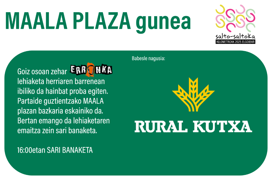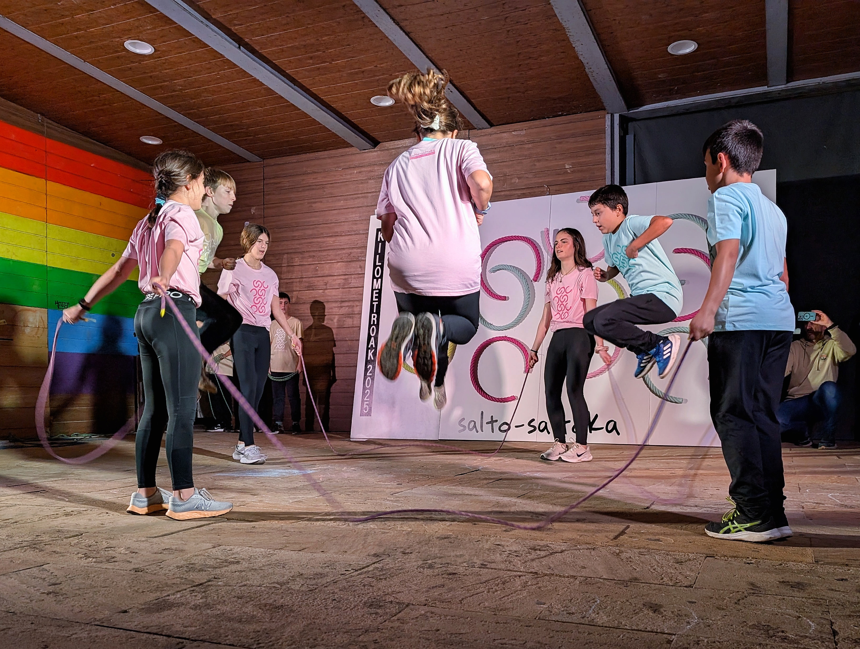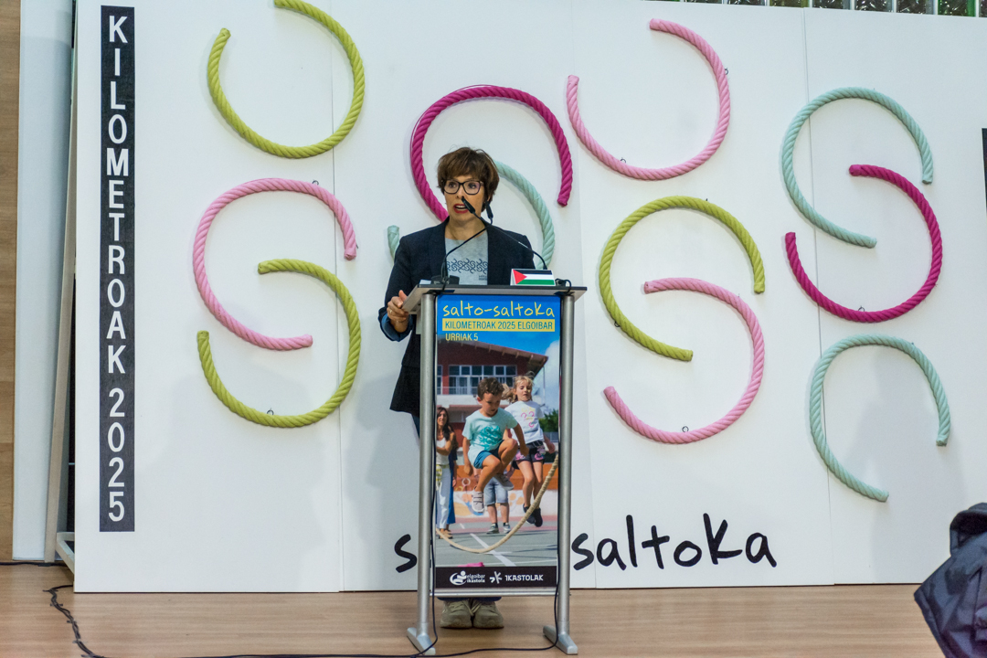 Kilometroen urtea baliatu nahi dugu euskararen erabilera areagotzeko. Ez euskararen alde gehiago egoteko, ez; euskaraz gehiago eta gehiagok egiteko. Hizkuntza bat baino gehiago dakizkigunok aldiro hautatzen dugu zein hizkuntzatan hitz egin. Eta euskara, hizkuntza gutxitua eta gutxiagotua denez, horrek zaildu egiten du hizkuntza hautatzerako orduan, euskara jakinda ere, beti, denok, euskara hautatzea. Ba urte honetan, nahi dugu elkarri laguntzea euskara hautatzen. Nahi dugu denontzat ere errazagoa izan dadin euskarara salto hori egitea. Eta horretarako, lagundu egin beharko diogu elkarri. Elkarren babesean lortuko dugu salto hori egitea. Elkarri soka emanda, elkarri soka luzatuta.